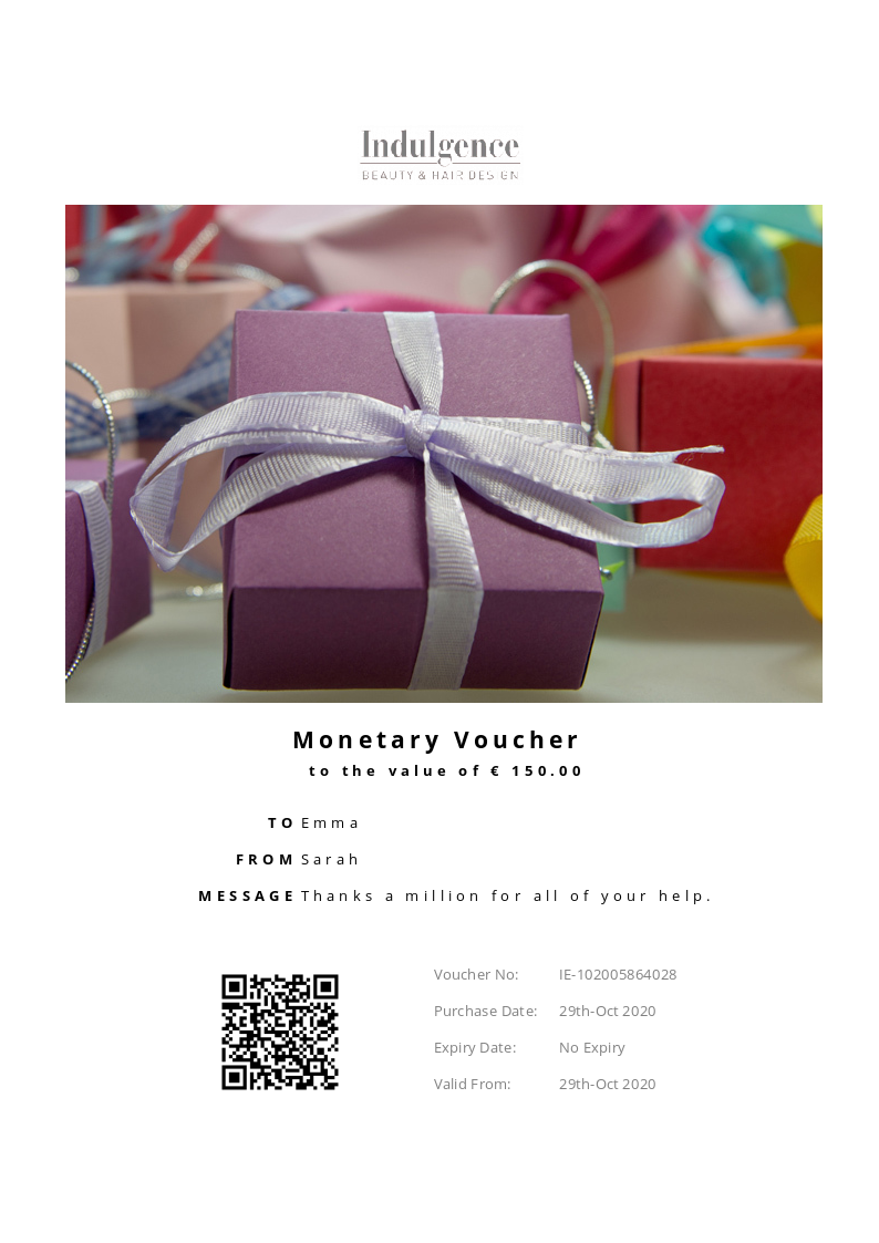 Indulgence Mullingar allows you to purchase instantly printable gift vouchers, special offers and tickets using the Voucher Connect platform.
